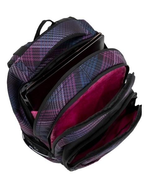 Vystužený chrbát, so skrytým vreckom na zips, vnútri s množstvom vreciek