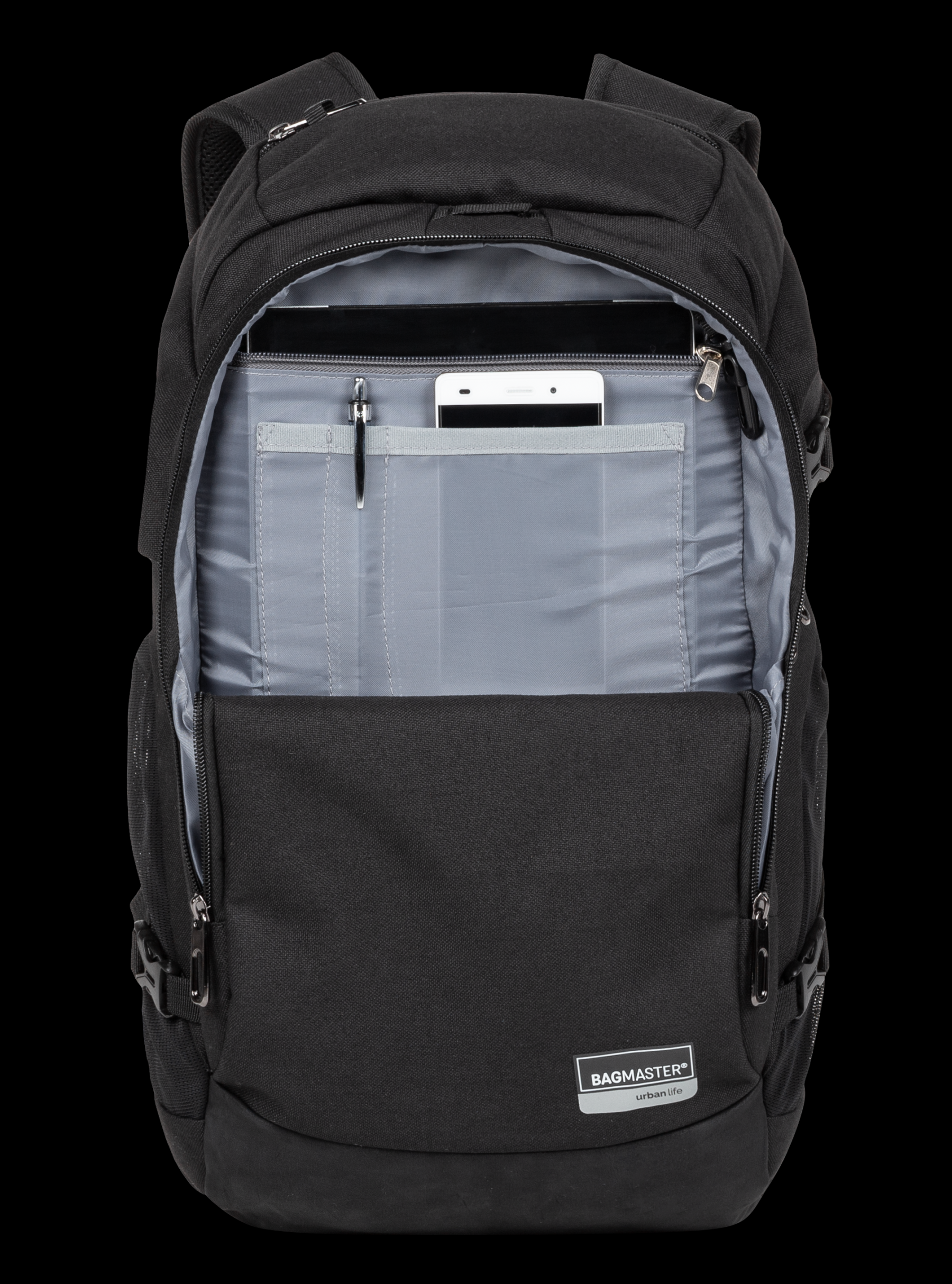 Študentský batoh jednokomorový, priestorný, z oddeľovacím vreckom v hlavnej komore. Predné vrecko je na zips, organizér, väčšie vrecko je na zips. Štýlové kožené doplnky a reflexný prvok. Bočné sieťované vrecká na fľašu, hrudná páska s reflexným…