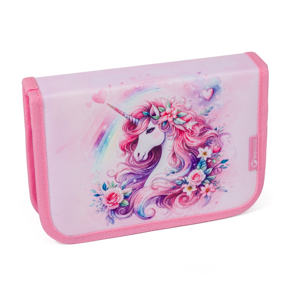 Veselý batoh s jednorožcom pre dievčatká od 1. do 3. triedy. Váži len 0,98 kg, a pritom je priestranný. Má tri veľké priehradky a organizér na mobilný telefón, peňaženku a iné cennosti. Stojí na plastových nožičkách a v tme svieti pomocou reflexných prvkov. Súpravu pre malú princeznú dopĺňa peračník a látková taška.