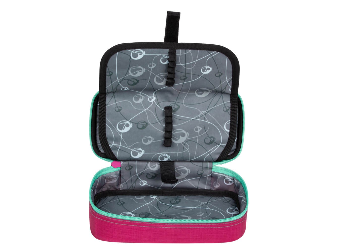 - Jednokomorový, prostorný penál s dvojitou přepážkou – na školní pomůcky