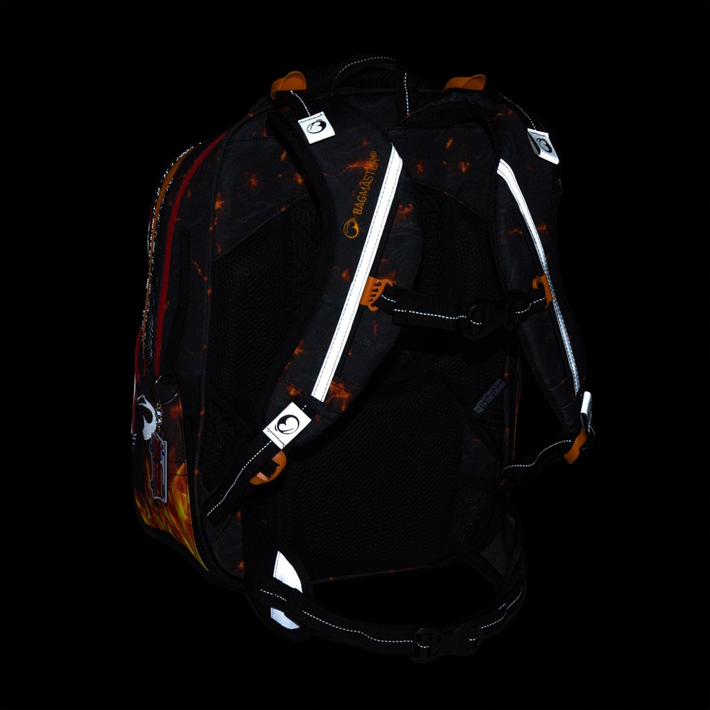 Batoh má veľa výrazných reflexných prvkov, ktoré udržia malého školáka v bezpečí (spredu, zboku a zozadu na ramenných popruhoch). Môžete sa o tom presvedčiť sami tak, že odfotíte batoh s bleskom.
