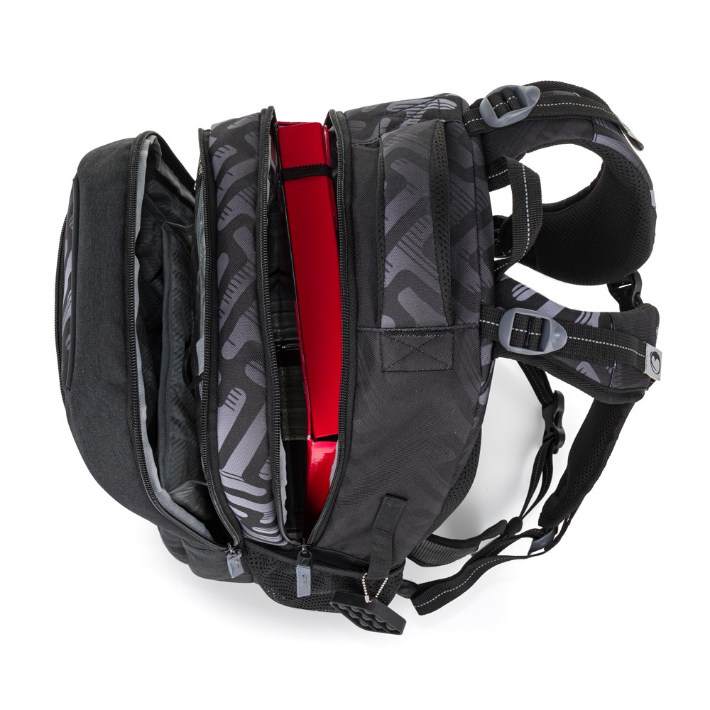 Správne držané tela pri chôdzi podporuje aj vnútorná kompresná kapsa v hlavnej komore. Je určená na najťažšie učebnice a tiež slúži na udržaní ťažiska čo najbližšie k chrbtici.