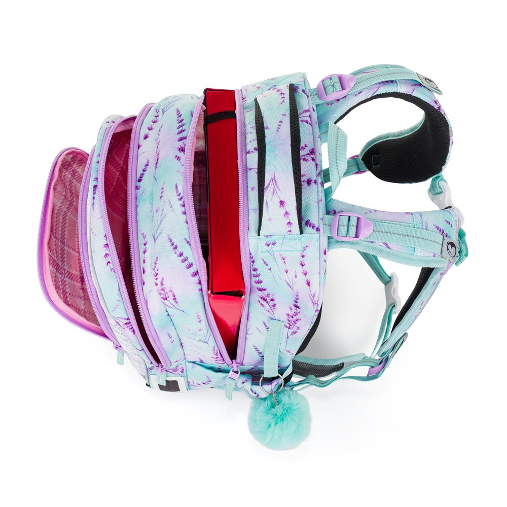 Má tri priestranné priehradky. Do hlavného sa zmestia veľké školské zakladače, ako aj učebnice a zošity formátu A4. Hlavná komora má aj kompresné vrecko s elastickými bočnými popruhmi na zakladače A4 a veľké učebnice. Pomáha ťahať a držať ťažké pomôcky čo najbližšie k chrbtu, takže školák alebo školáčka má ťažisko blízko chrbtice a pri chôdzi sa nehrbí.