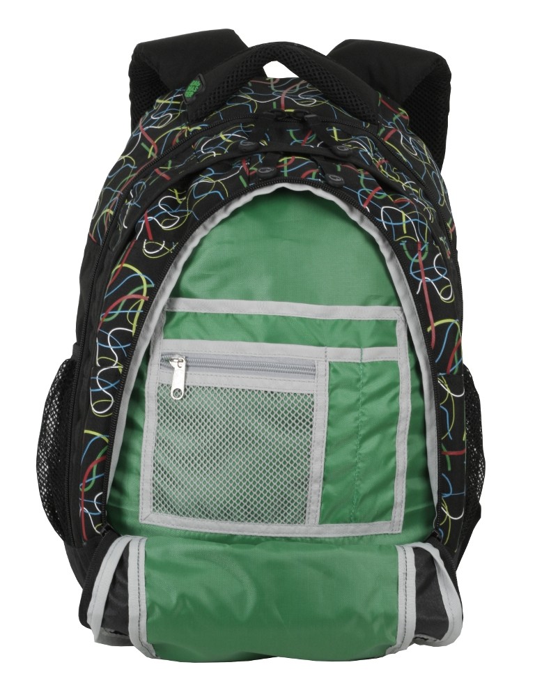 2 bočné sieťované vrecká s pružným lemom, vhodné na fľašu.