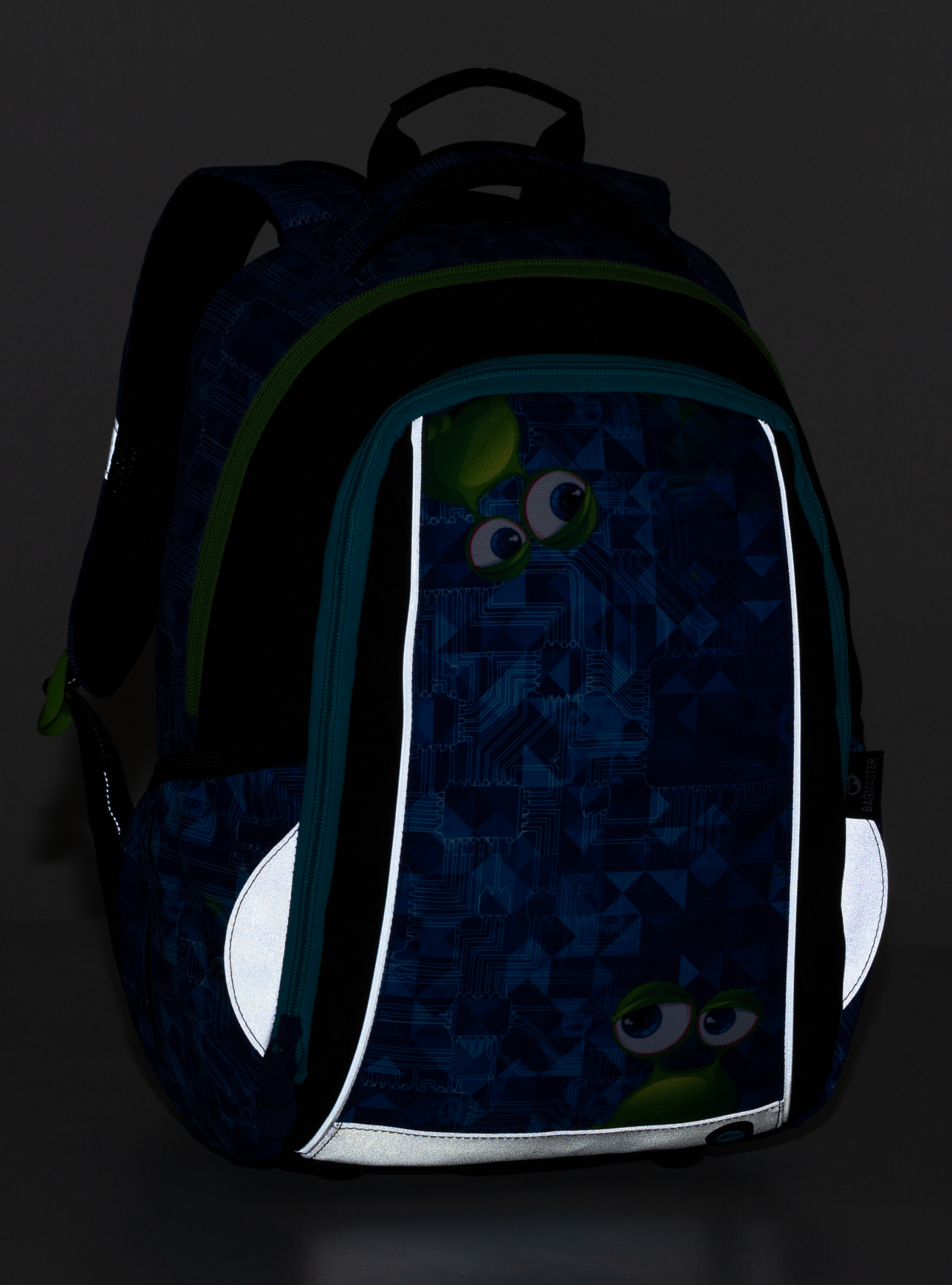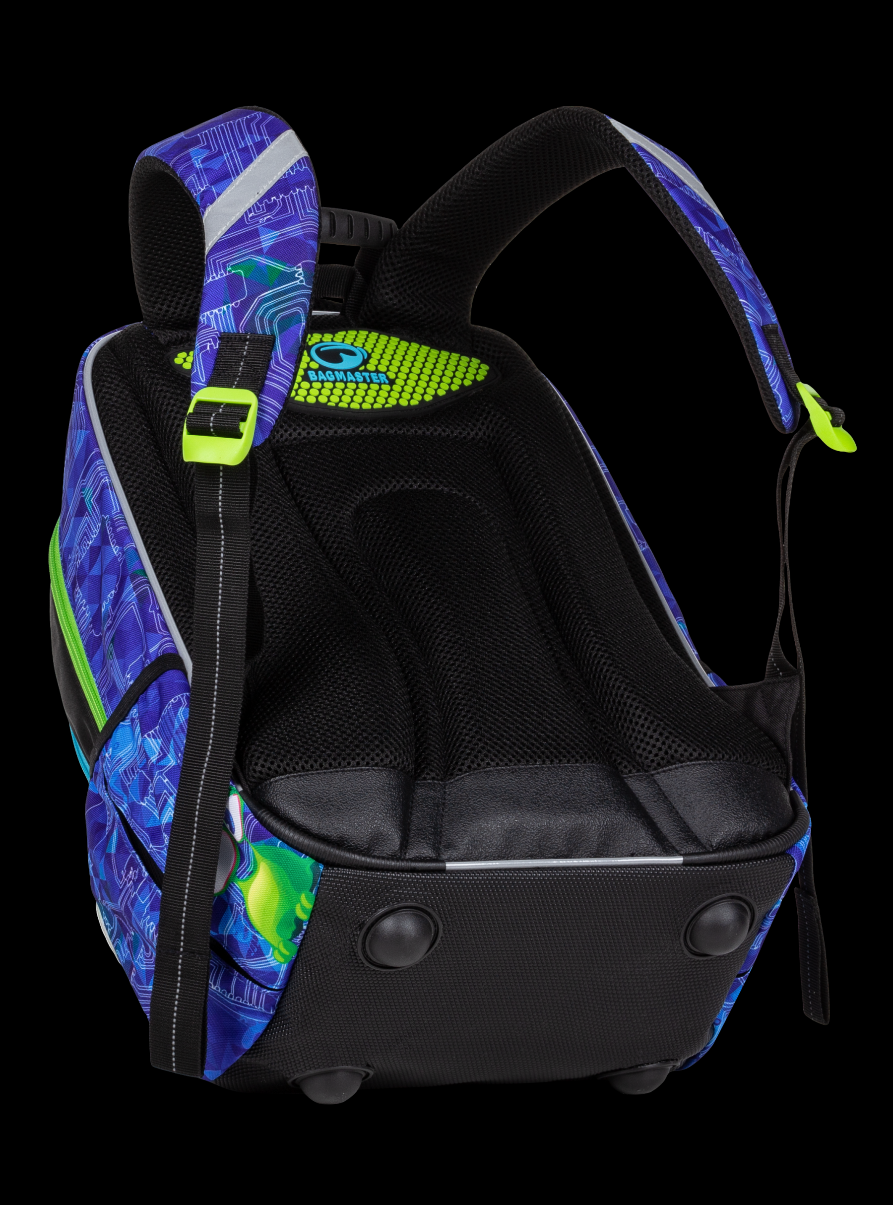 - Anatomicky tvarovaný chrbát, vrátane ľahkého hliníkového rámu na rovnomerné rozloženie záťaže školských pomôcok